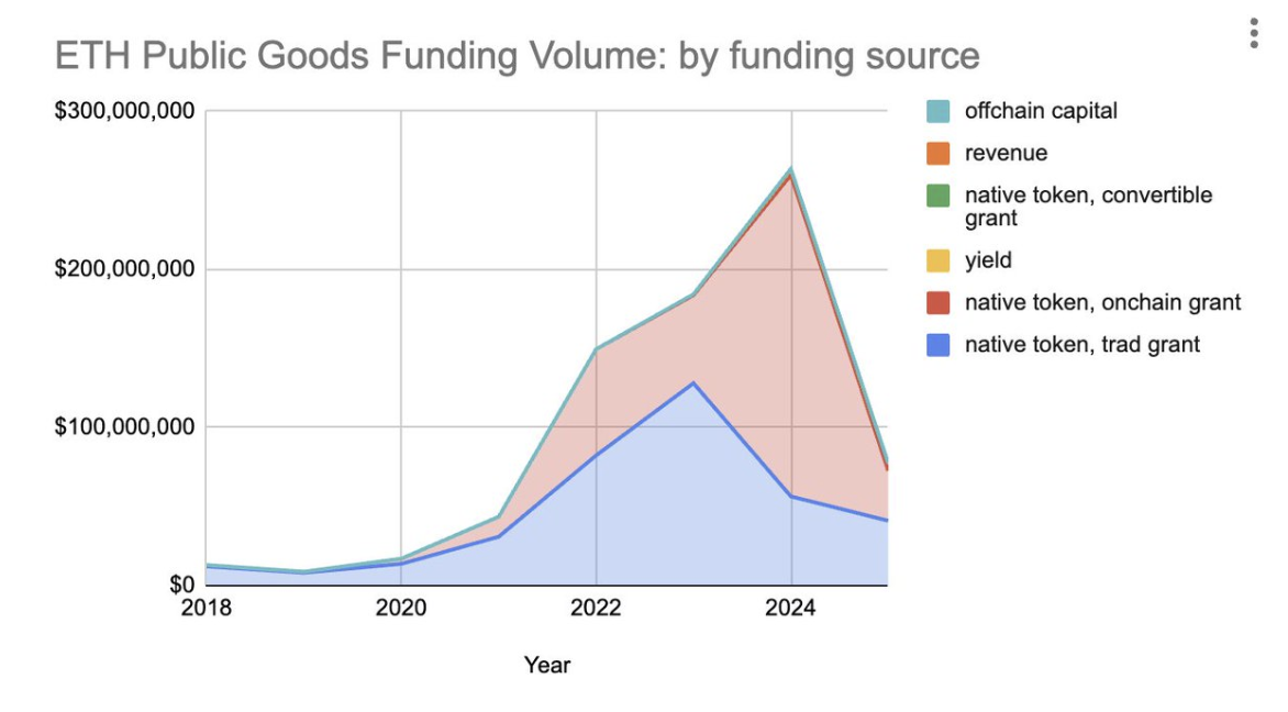 TLDR: Where the money comes from shapes how it flows. Ethereum public goods funding moved from flush treasuries in bull markets to leaner, more strategic sources in bear markets. The next era requires diversified funding — from protocol revenue to onchain value capture — not just foundation grants.
